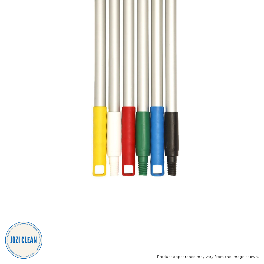 The Plastic Moulded Thread Handle is a versatile, colour-coded handle designed to fit a wide range of mop and broom heads. With a 25mm diameter and 1.27m length, it offers both strength and ease of use for daily cleaning operations.