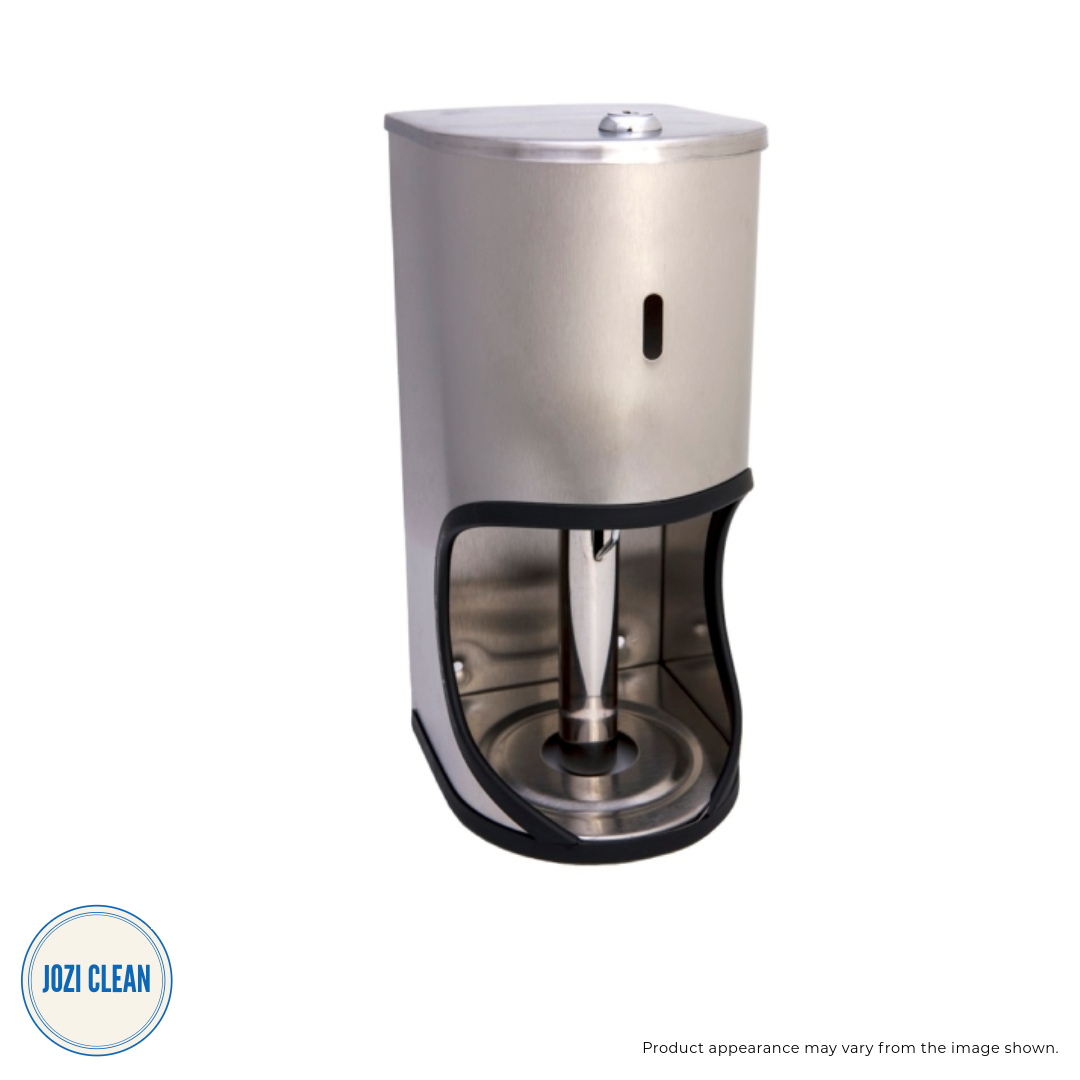 The TR3 (holds 3 rolls of toilet paper) toilet roll holder is a wall-mounted dispenser made from high-quality stainless steel, offering a sleek, professional look. Designed with security in mind, it features a lockable mechanism to prevent unauthorised access, making it ideal for public and commercial restrooms.